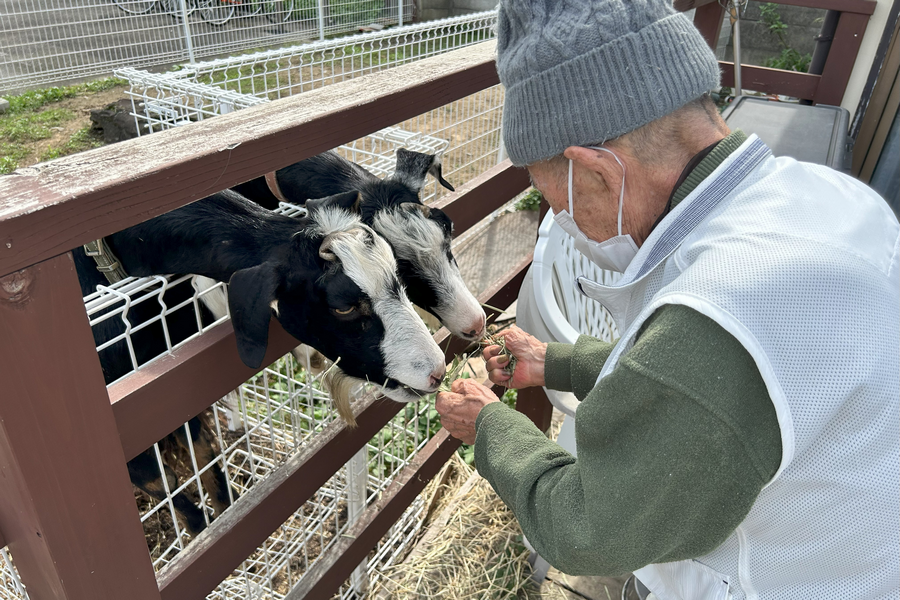 行田の施設では2匹のヤギと暮らしています。とても人懐っこく、なでて欲しそうに近づいてきます。