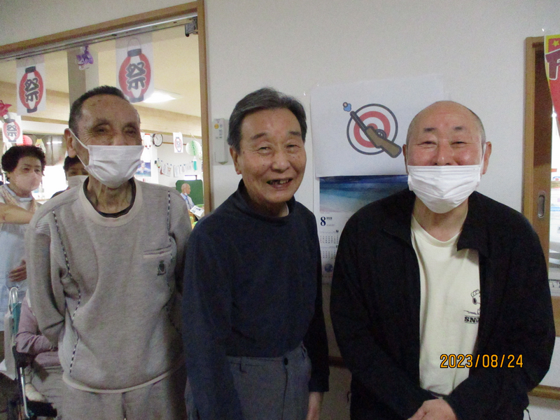 暑い夏には「納涼祭」を行います。「おかしつり」や「射的」などの縁日や、「お好み焼き・焼きそば・かき氷」などの、屋台のご飯をご提供しております。