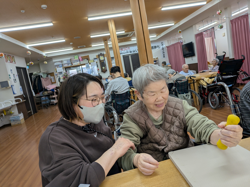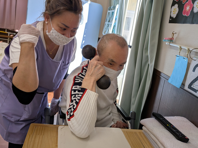 当施設では、ダンベルを使った筋力トレーニングを週2回行っております。